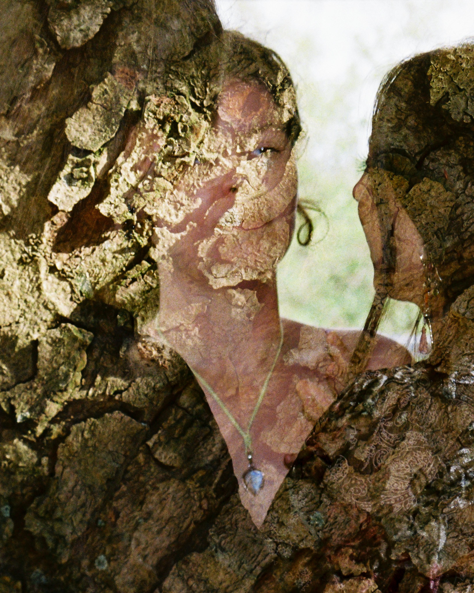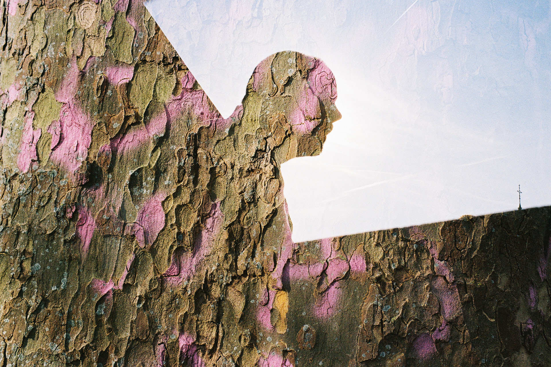 This is a selection of images in which I experimented with photographing people in high contrast, often against the sun or with strong backlighting, on the first exposure, and a variety of textures on the second exposure of the film roll. Apart from that, there was no planning or calculating of the exact in-camera marriage. Chance added their spice to the endeavor.