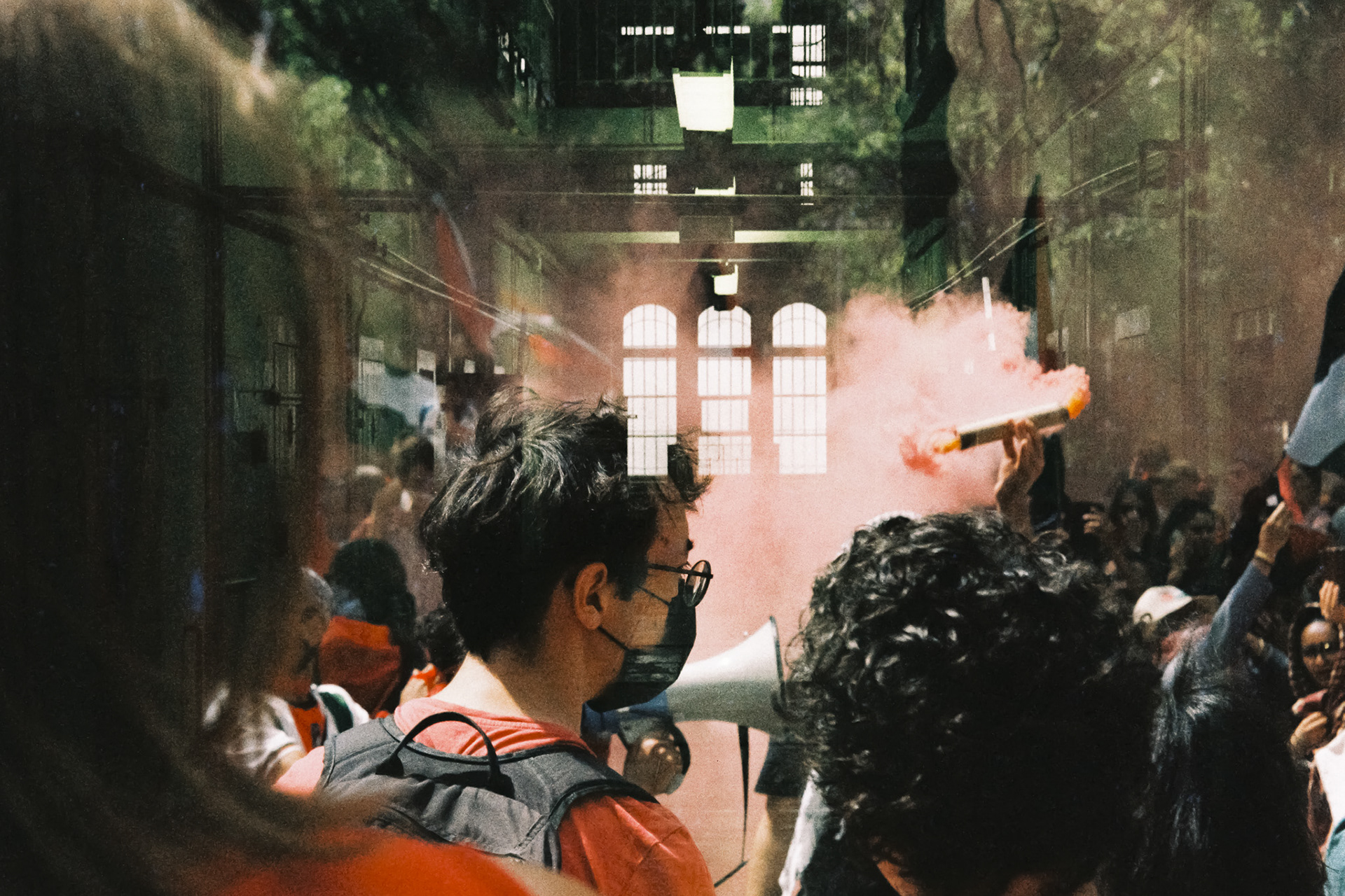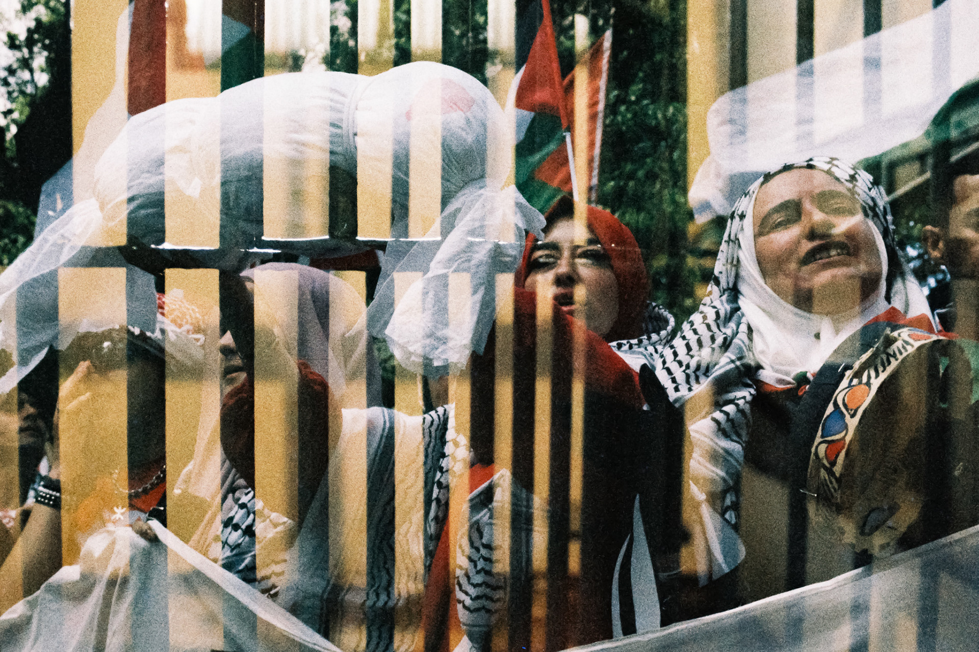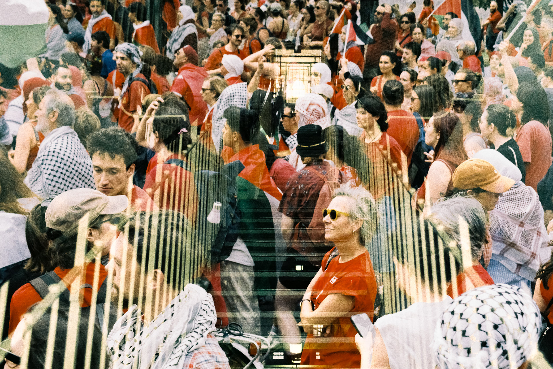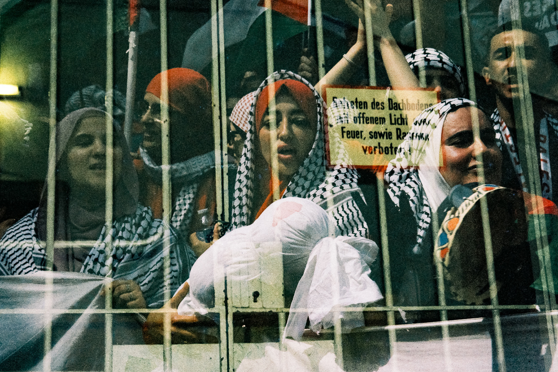 Caged Rebellion is a photographic project of analog double exposures in which Pro Palestine protests in Brussels, Belgium meet the interior of a former Stasi prison for political detainees in Bautzen, Eastern Germany. By bringing these scenes into the same frame, the work draws a direct line between contemporary acts of political expression and a historical structure built to suppress them, pointing at their co-existence in the present.