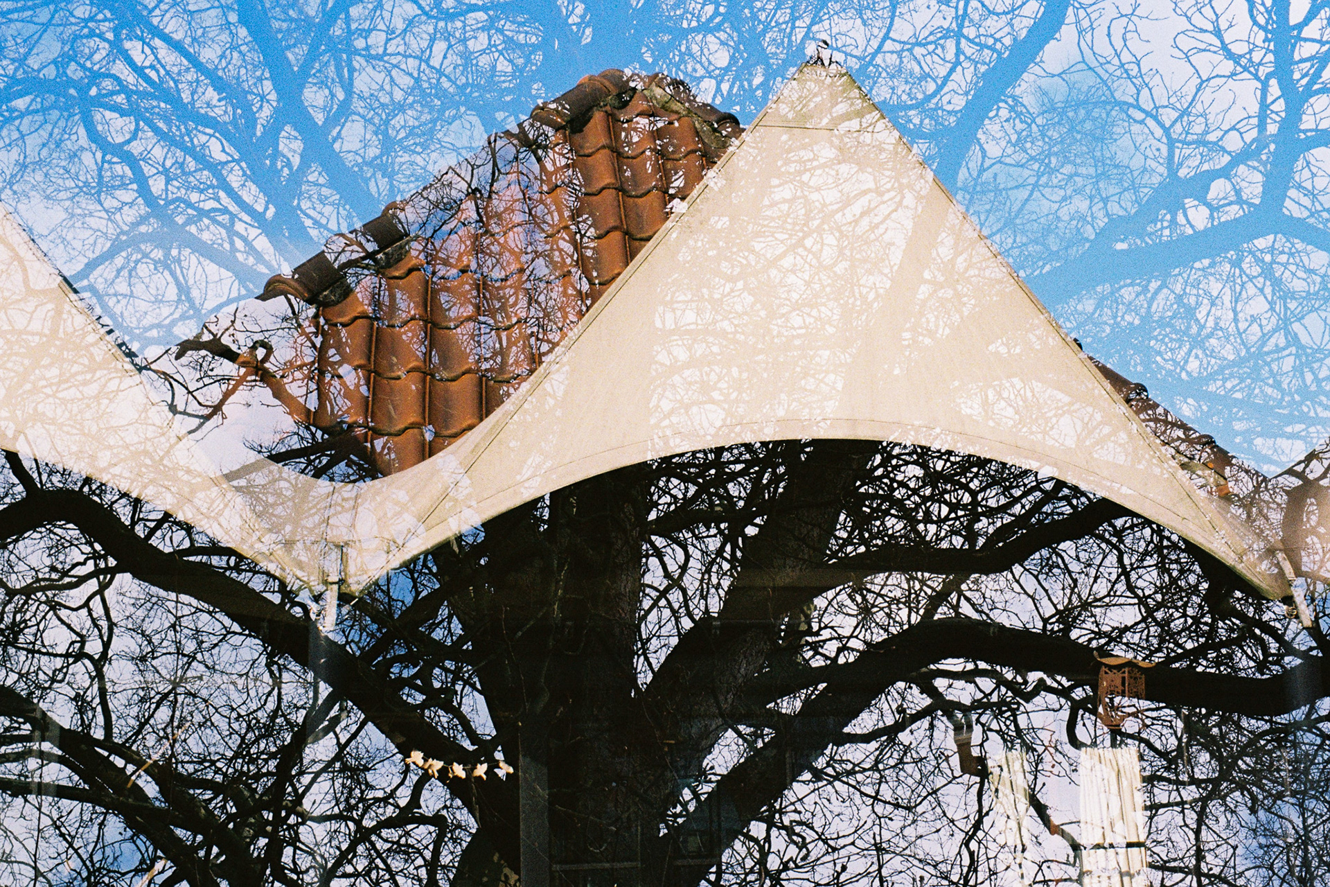 All analog double exposures in this selection were shot intuitively. I did not keep track of what I shot when and where. Once exposed for the first time, the film rolls would wait in the fridge for their second adventure, often for several months.